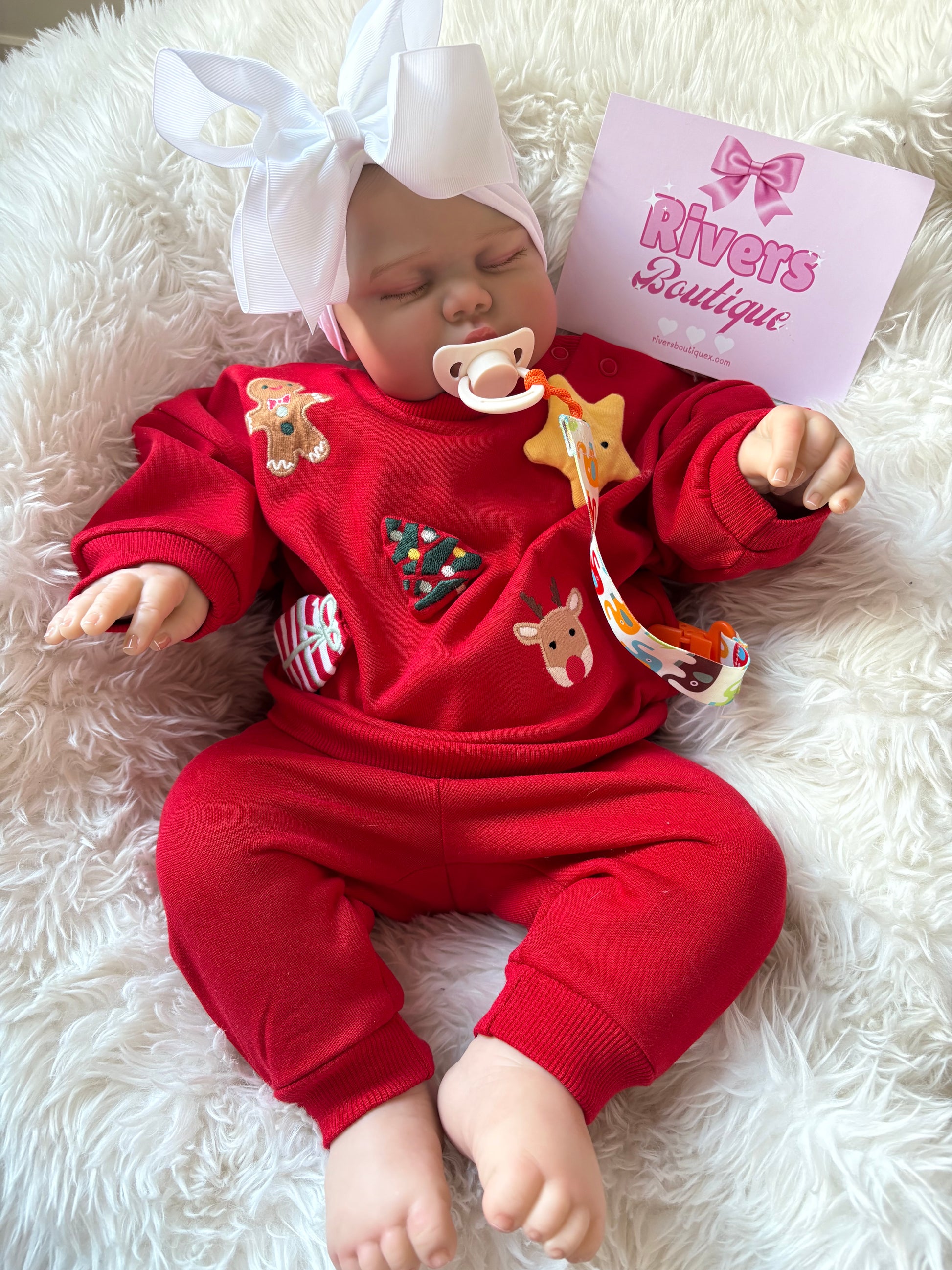 Stunning baby girl reborn. She has a soft body with silicone vinyl arms, legs and head. She is 24 inches and weighted at 8lbs.