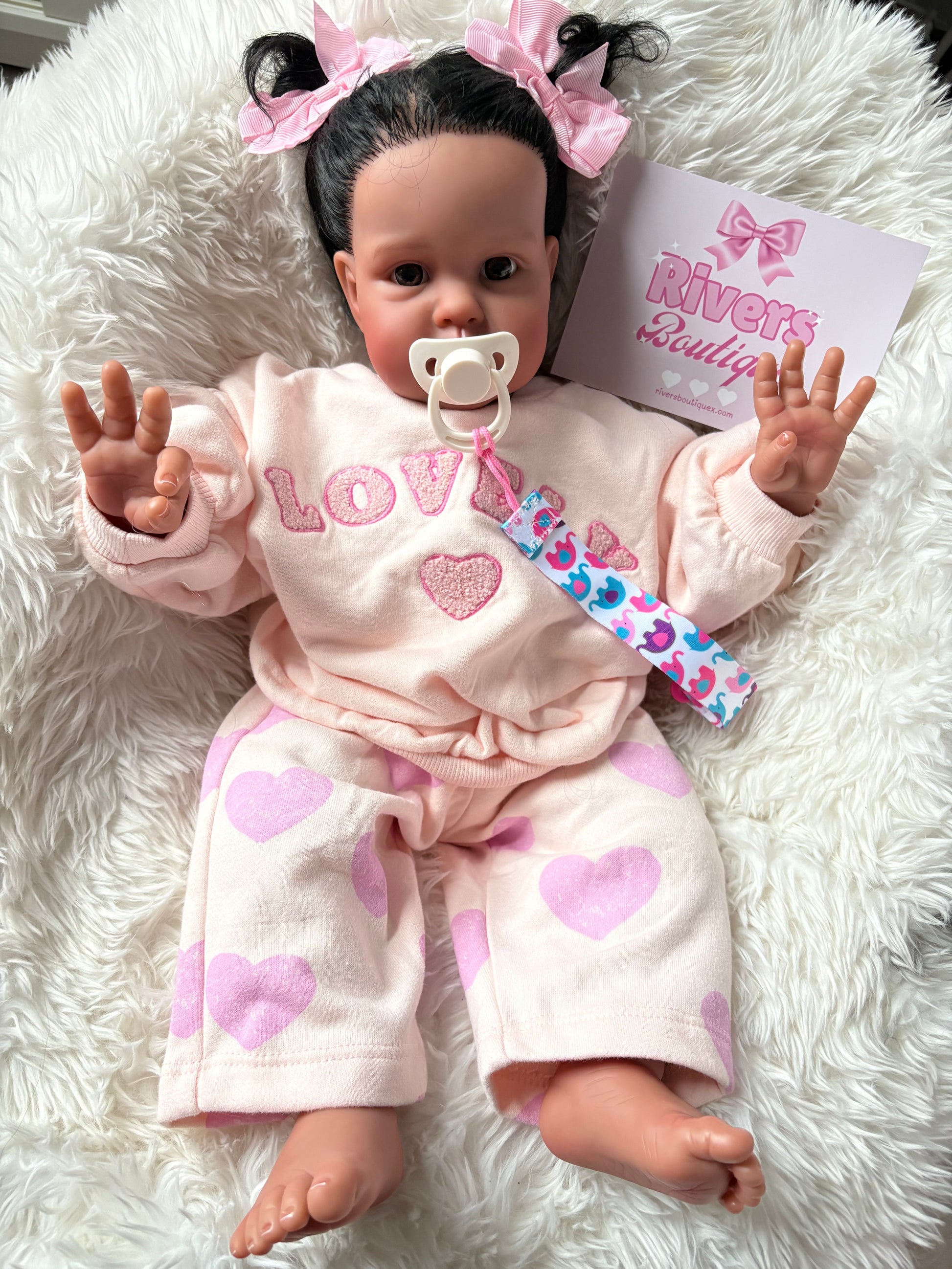 Linda menina renascida. Ela tem um corpo macio com braços, pernas e cabeça de vinil de silicone. Ela tem 20 polegadas e pesa 6 libras.
